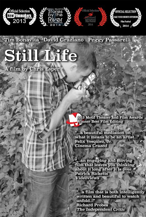 Includes an audio commentary with writer/director/producer, Chris Esper, an additional commentary with Actors David Graziano and Peggy Passarelli with behind the scenes photos. Based on a quote by Ira Glass, "Still Life" tells the story of a photography student that struggles with his thoughts about creativity and talent. Official Selection of the NewFilmmakers New York Film Festival, Stories by the River Film Festival (Best Use of Color Correction Nominee), Sanford International Film Festival (Best Short Film Nominee), Take Your Shorts Offshore Film Festival, Celebrating Film in Philadelphia Film Festival and Moab International Film Festival. Winner of Best Film Editing (Jill Poisson) at the 2013 Motif Magazine Theater and Film Awards.